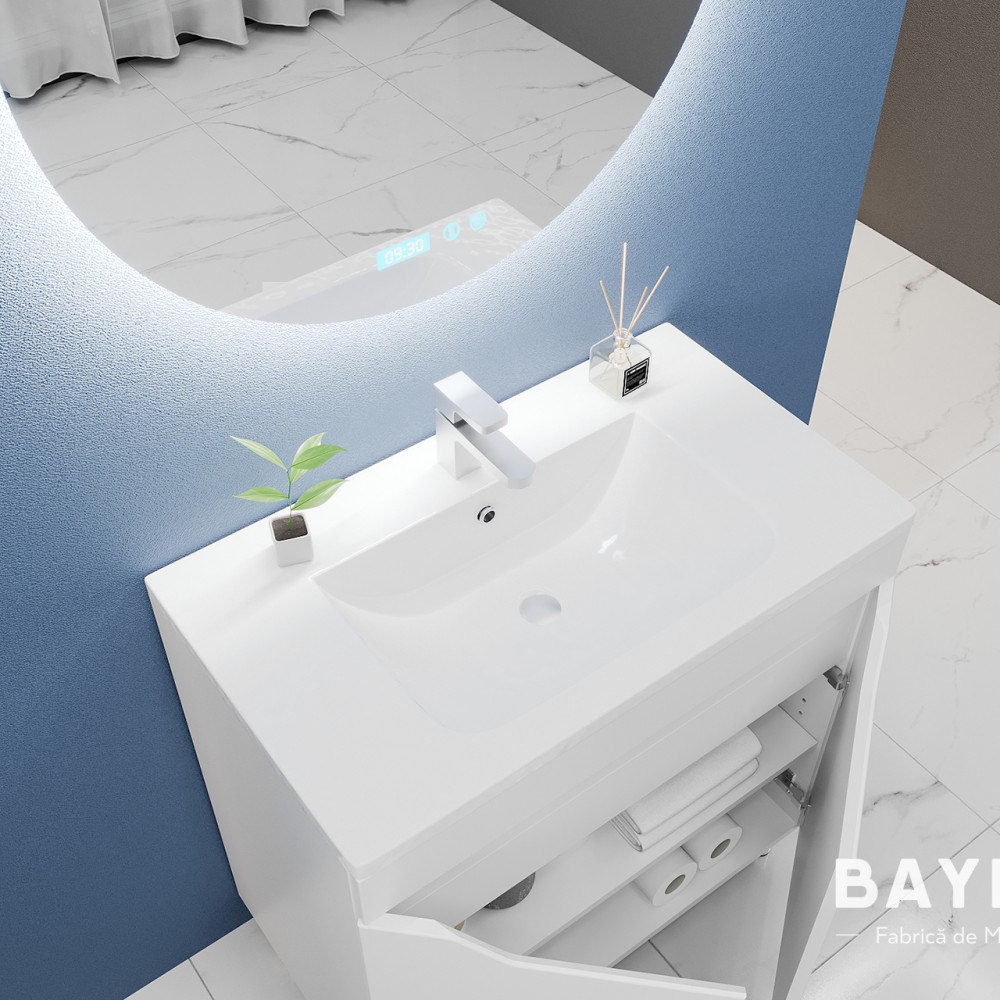 Seria Selena include dulapuri de baie pe pardoseală, cu lavoar inclus, prevăzute cu uși batante cu închidere amortizată, pentru un plus de confort și silențiozitate în utilizarea zilnică. Gama variată de dimensiuni — de la 500 mm până la 1000 mm — permite alegerea soluției potrivite atât pentru băi compacte, cât și pentru spații mai generoase. Liniile curate, proporțiile echilibrate și finisajul alb mat oferă luminozitate, ordine și o senzație de spațiu aerisit. Selena înseamnă estetică practică și un stil echilibrat, care completează armonios orice interior și transformă confortul zilnic într-o experiență naturală.
