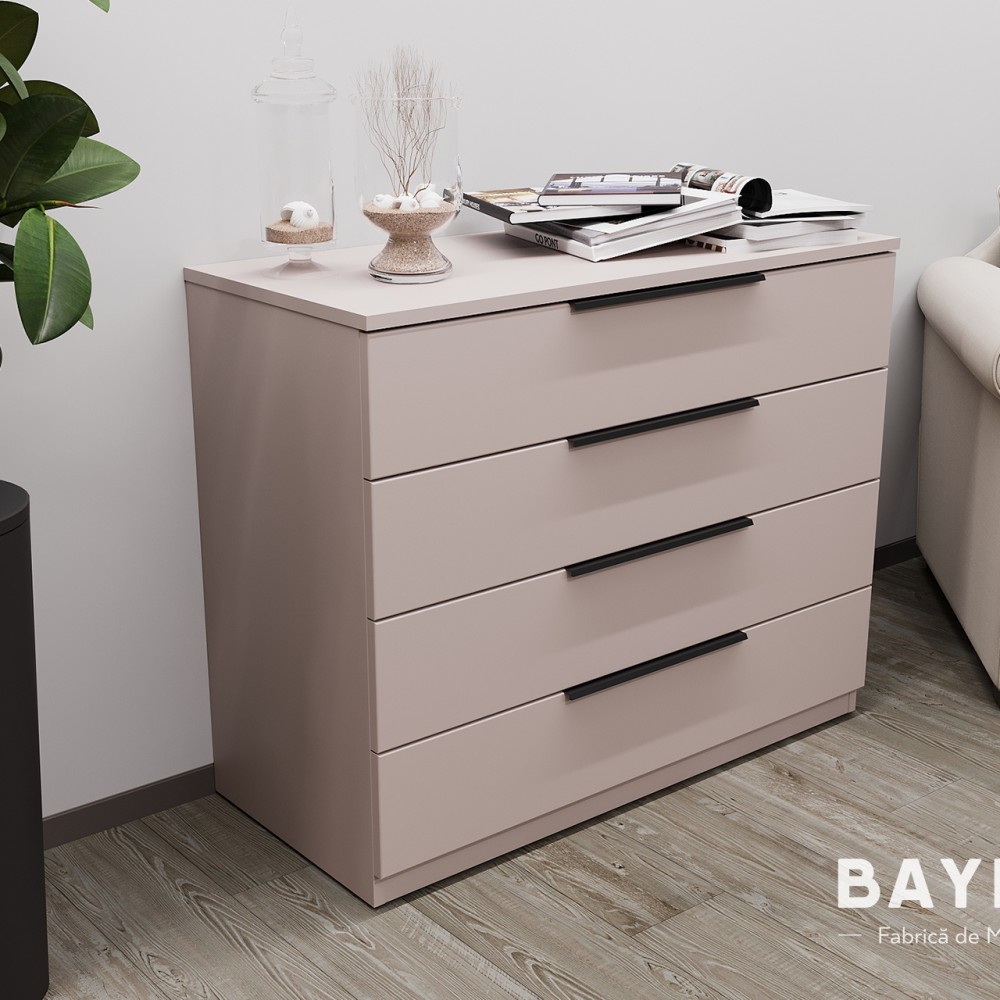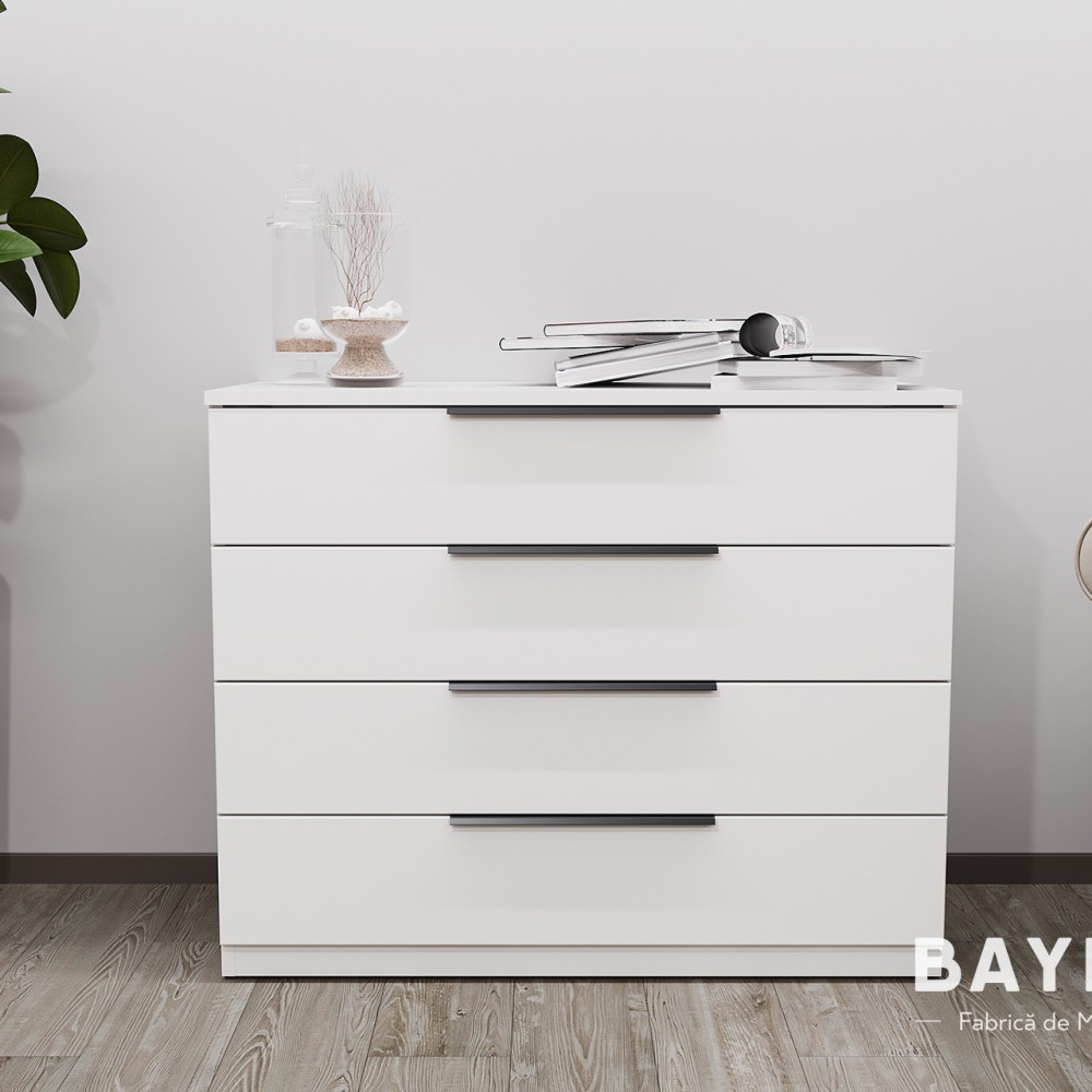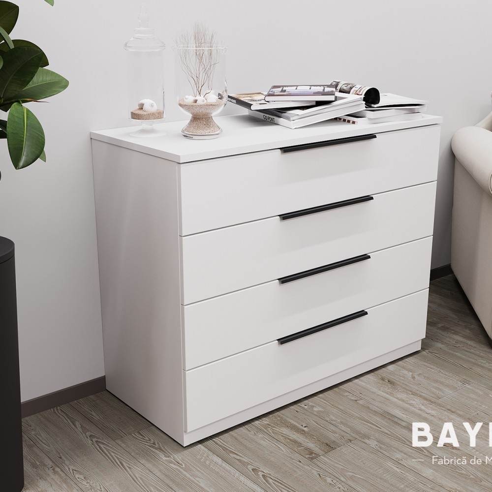 Aduce luminozitate și eleganță în orice colț al casei tale. Cu un spațiu generos de depozitare, această comodă este perfectă pentru a-ți păstra lucrurile și accesoriile ordonate.