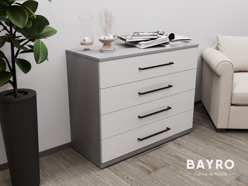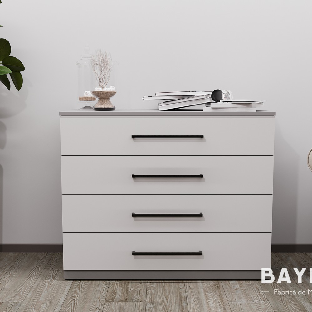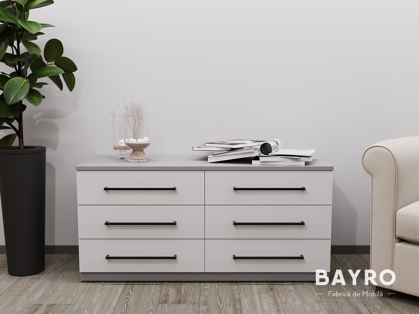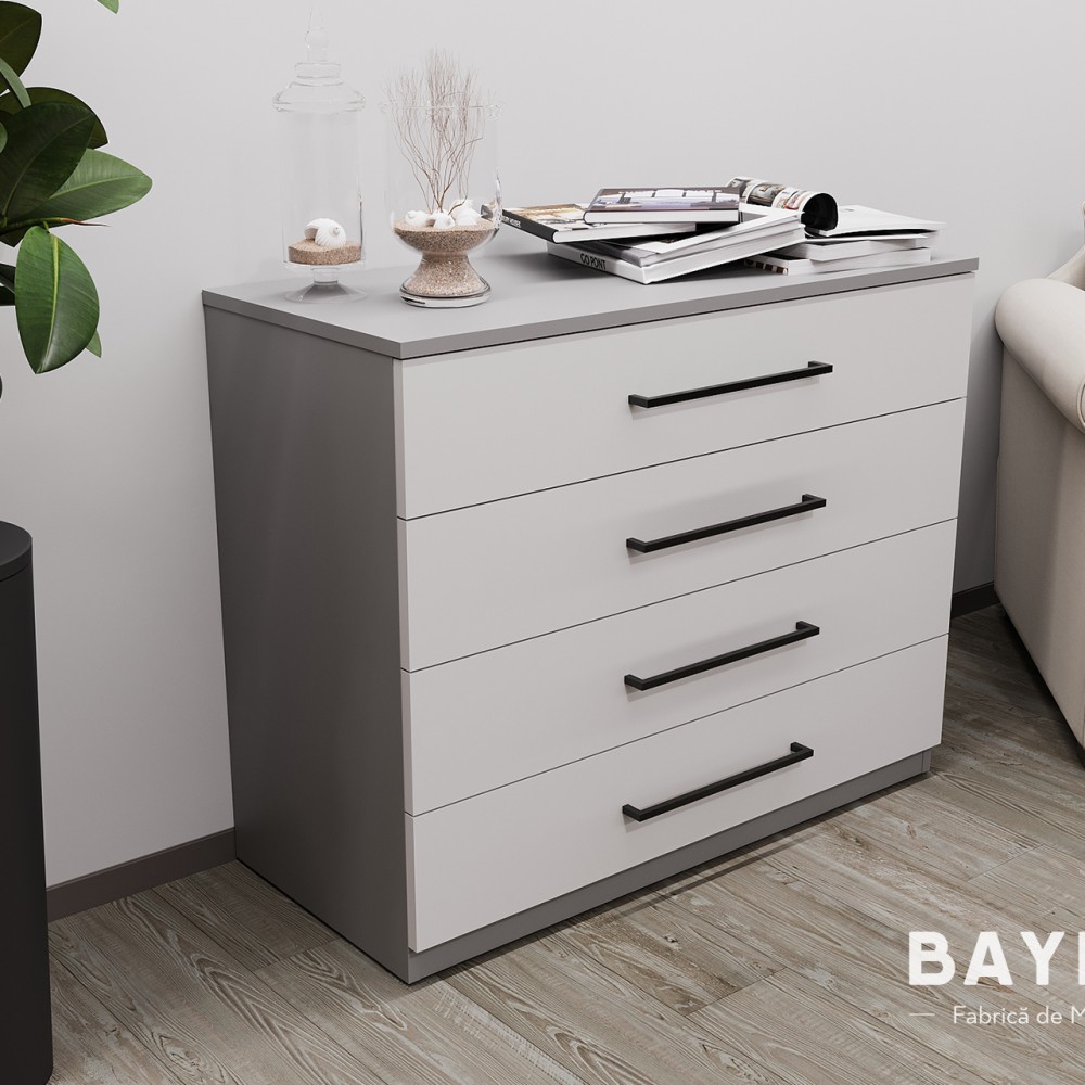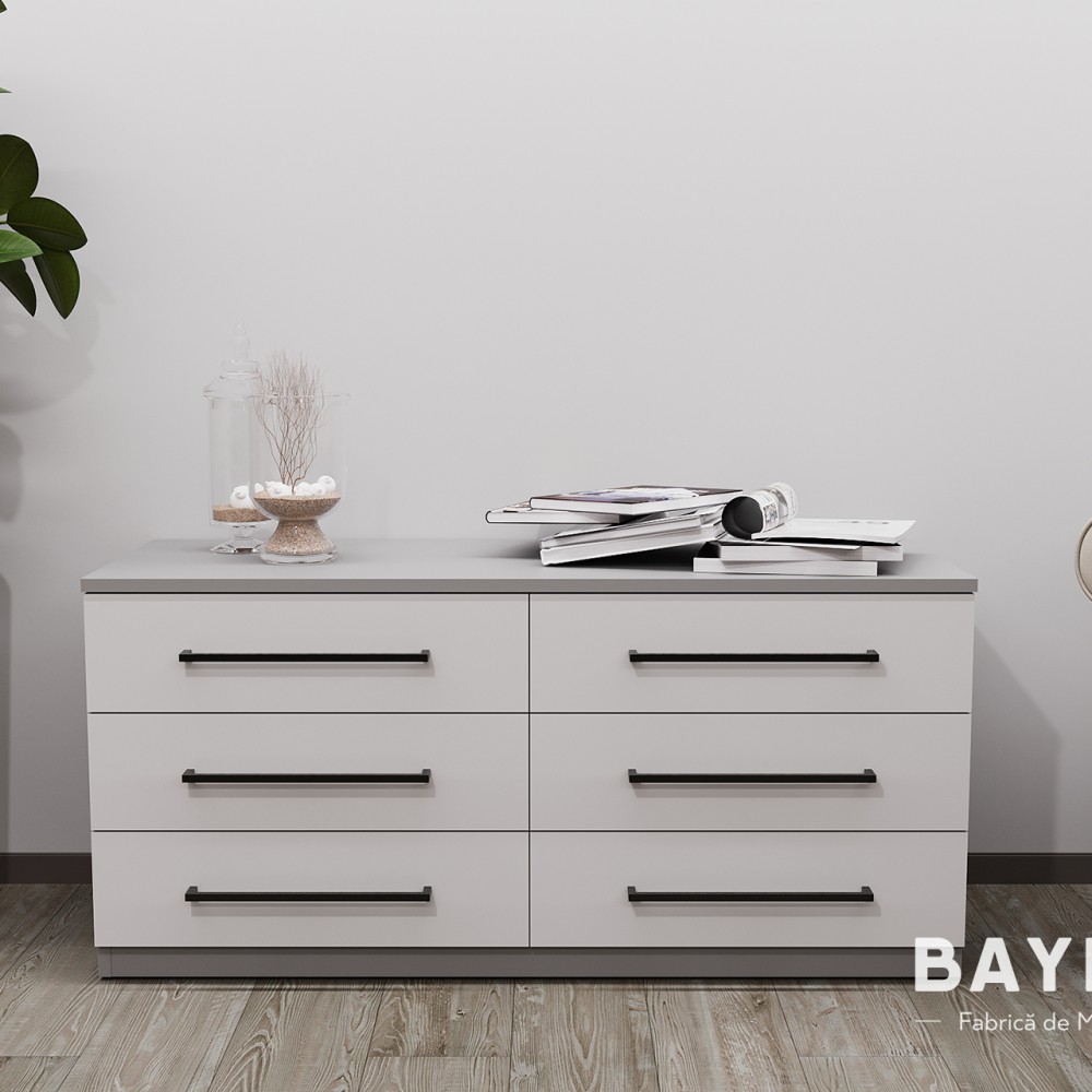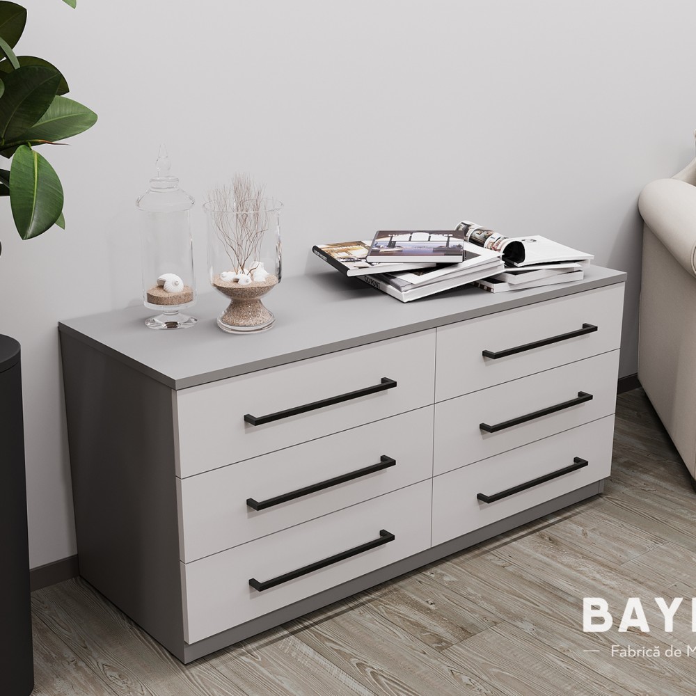 Datorită sertarelor încăpătoare, comoda ajută la menținerea ordinii, păstrând hainele, textilele sau accesoriile bine organizate. Designul simplu și elegant o transformă într-o soluție versatilă, potrivită atât pentru dormitor, cât și pentru living.