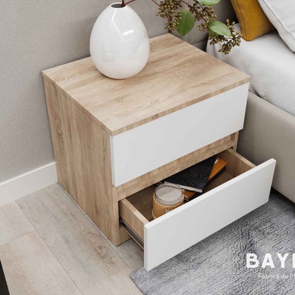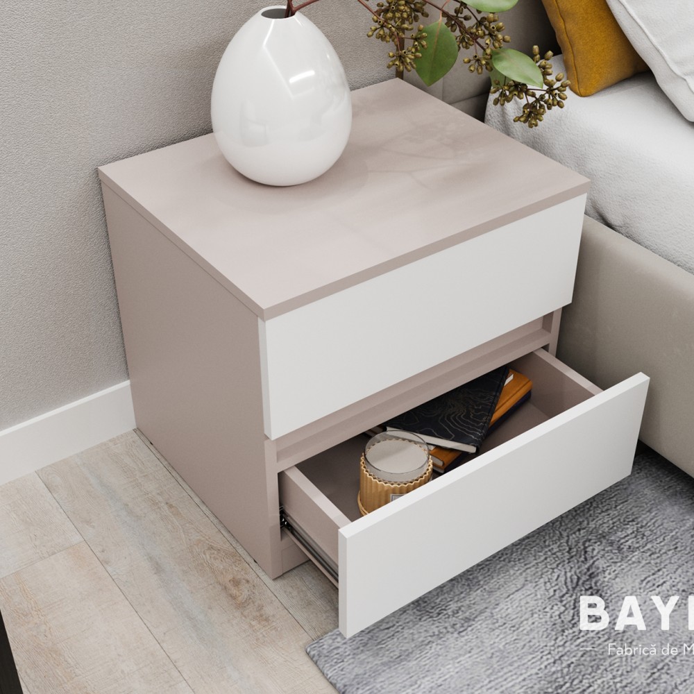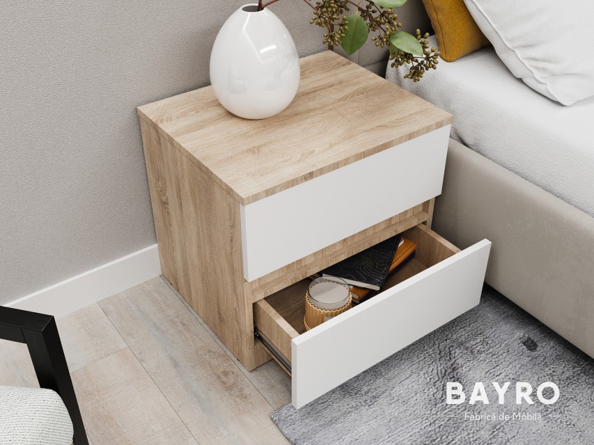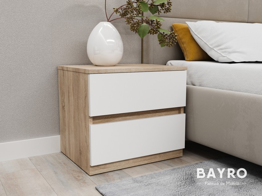 Noptieră Harmony completează perfect dormitorul printr-un design minimalist și funcțional. Disponibilă cu corp în două variante de culori, se integrează ușor în diferite stiluri de amenajare. Fațadele cu mânere ascunse accentuează liniile curate și moderne, oferind un aspect elegant și discret. Practică și estetică în același timp, noptiera Harmony devine detaliul care aduce echilibru și rafinament spațiului tău de odihnă.