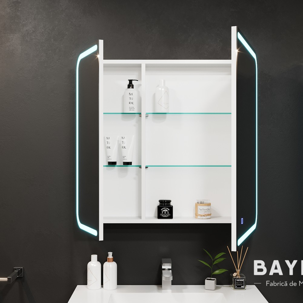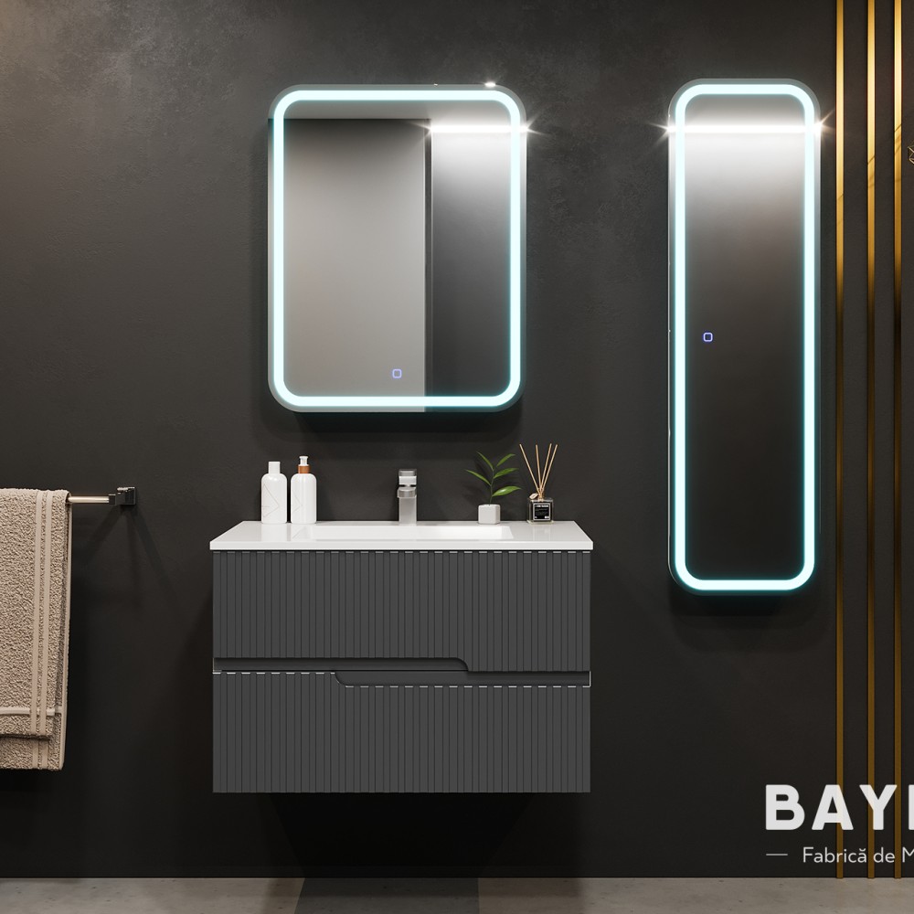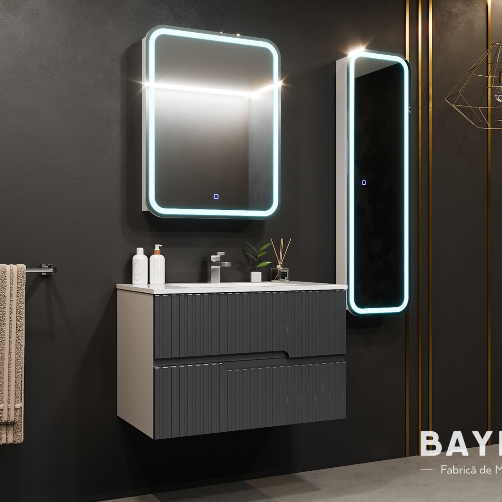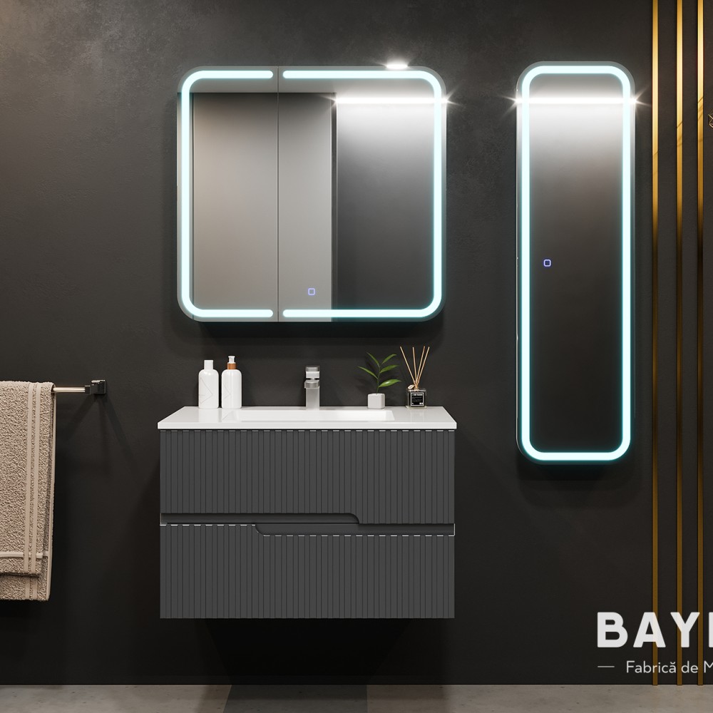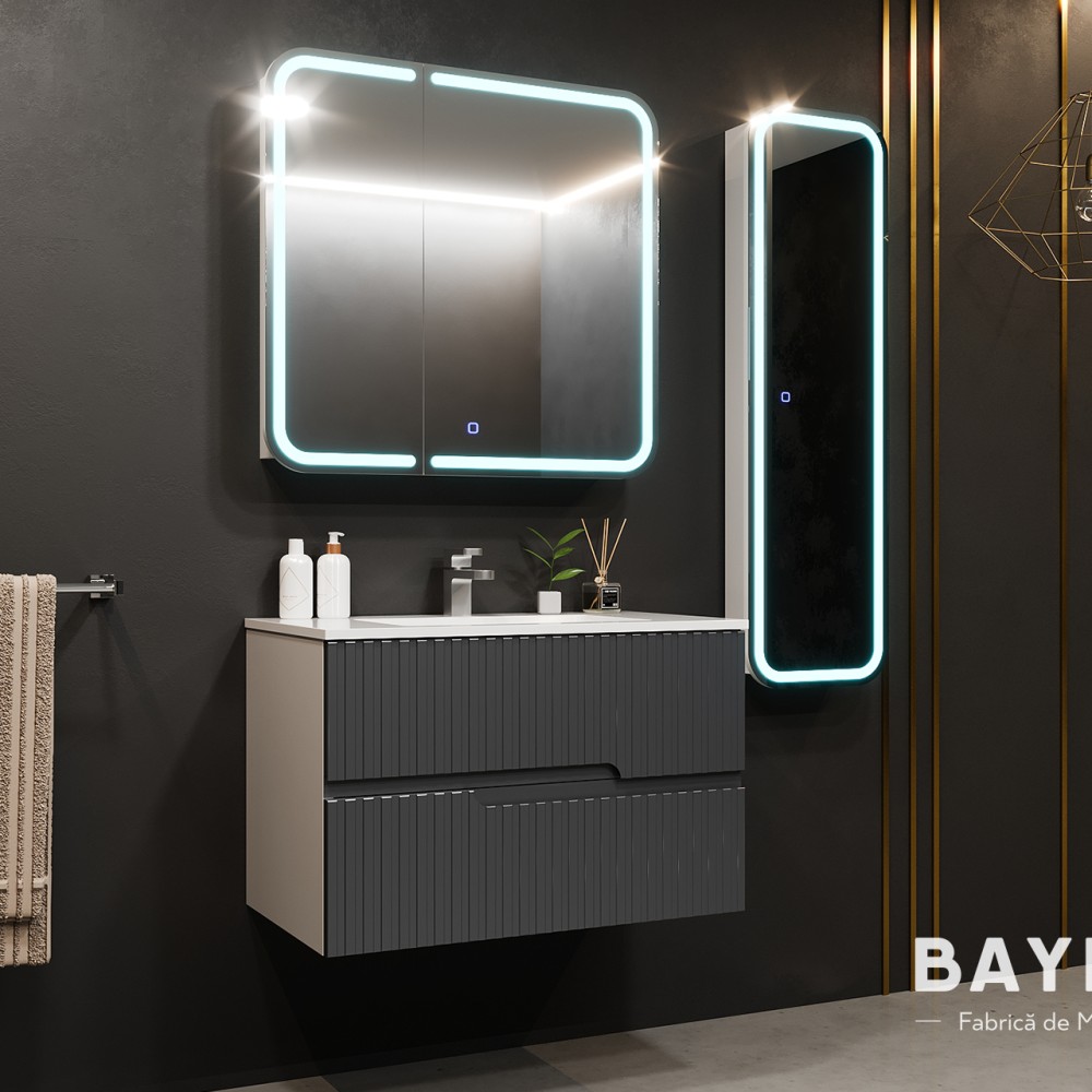 Sonata – armonie între eleganță și funcționalitate. Colecția Sonata redefinește rafinamentul băii moderne printr-un design echilibrat și detalii atent alese. Dulapurile suspendate cu oglindă sunt disponibile în două variante – cu iluminare LED integrată sau fără – oferind libertatea de a alege între un aspect clasic sau unul accentuat de lumină modernă. Completând perfect ansamblul, dulapul tip coloană Sonata impresionează prin fațada oglindită, care adaugă senzația de spațiu și lumină. Și acesta poate fi ales cu sau fără iluminare, pentru a se potrivi oricărui stil de amenajare.