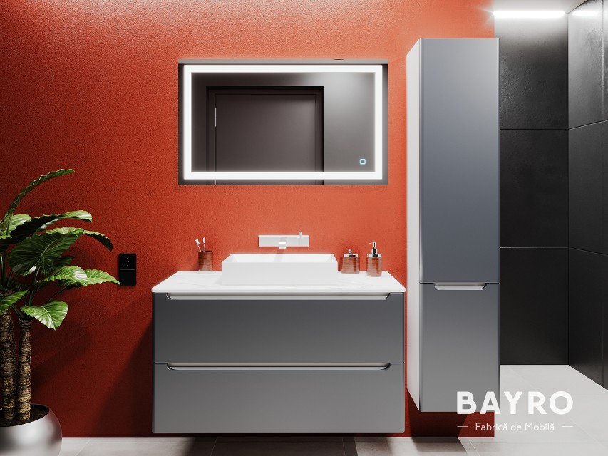 Bucurați-vă de un design modern și organizare eficientă în baie cu setul suspendat Bergamo, care include dulap cu blat pentru lavoar și dulap înalt – o alegere stilată și practică pentru spațiul dvs.