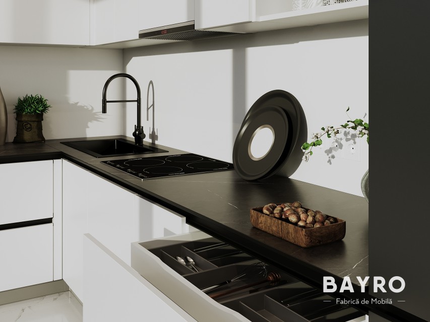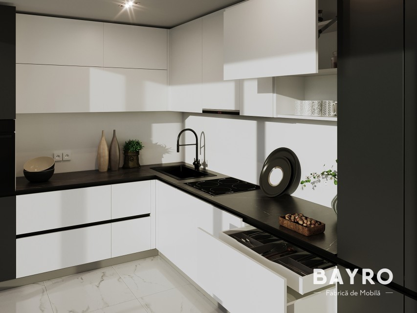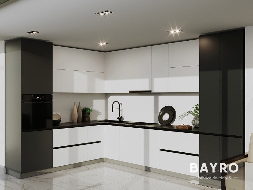 Современные линии и гармония цветов делают эту кухню идеальным выбором для любого жилья.