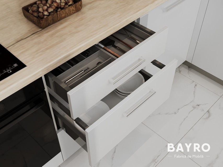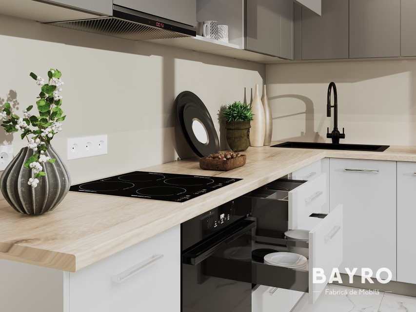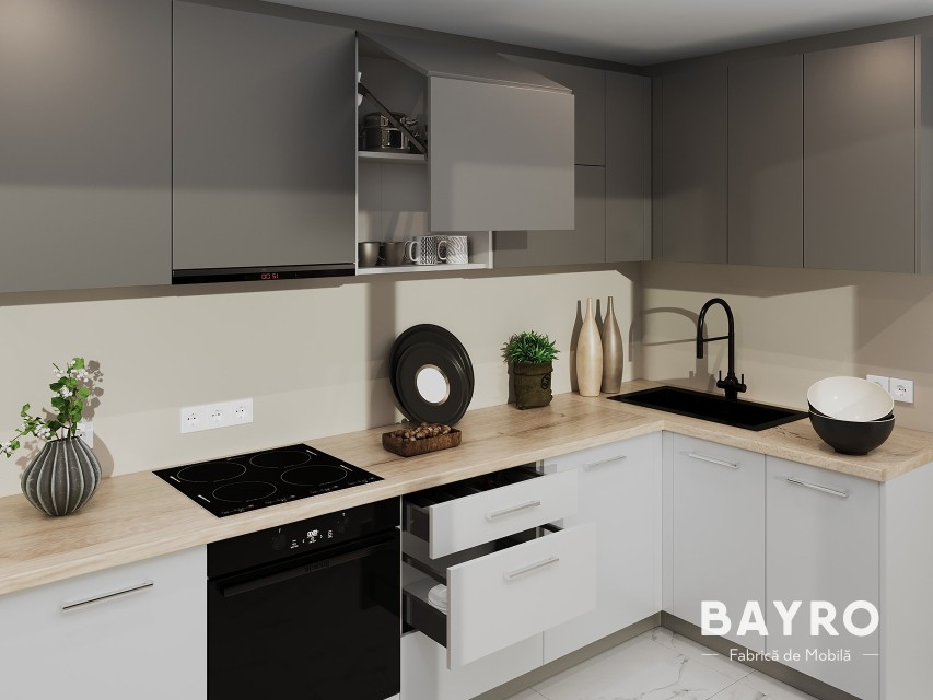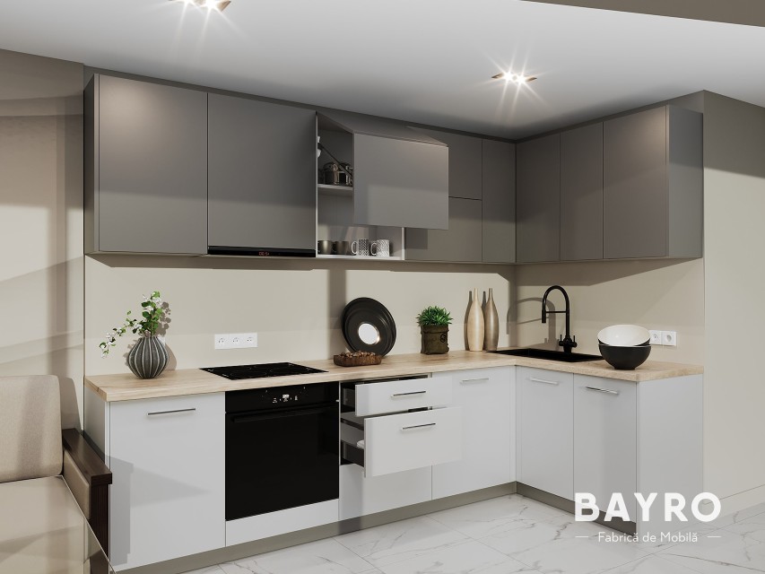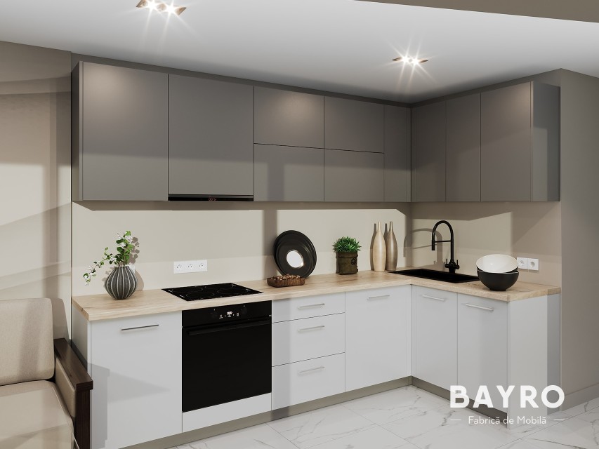 Кухня Dolce Cucine Stone Grey / Light Grey создает современную и сбалансированную атмосферу благодаря изысканным оттенкам серого и фасадам из МДФ с покрытием soft touch, которые обеспечивают бархатистую и приятную на ощупь текстуру. Высококачественная немецкая фурнитура обеспечивает долговечность и комфорт в повседневном использовании, сочетая элегантность с функциональностью в пространстве, идеально приспособленном для повседневной жизни.