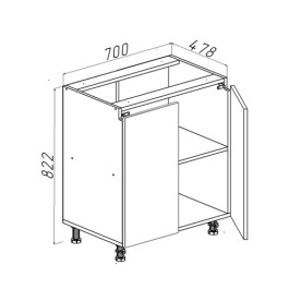 Dulap pardoseală pentru bucătărie Monti Cucine White mat 700x820x460