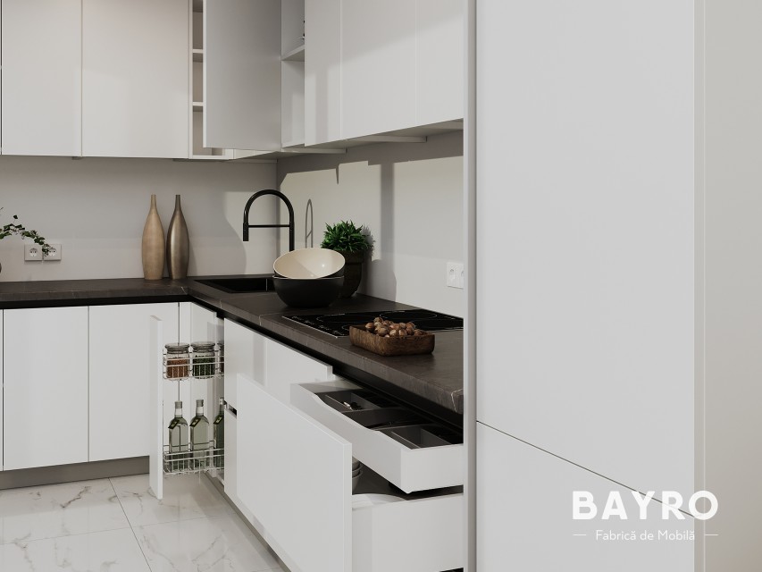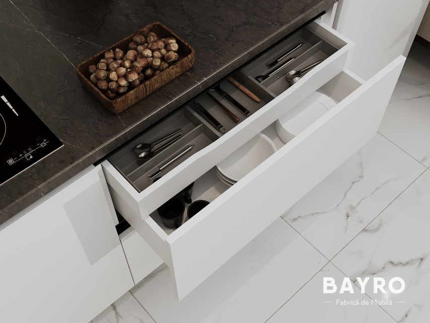 Простая геометрия и матовая текстура модели идеально подходят для минималистичных интерьеров. Впечатление простоты подчеркивается отсутствием ручек. Благодаря белому цвету мебель способствует визуальному расширению и созданию просторного пространства. Идеальный вариант для тех, кто ценит долговечное качество и отличное соотношение цены и качества.