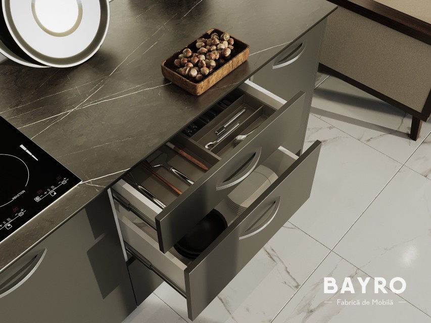 Выбирая кухню Vision для своего дома, вы получаете не только функциональную и практичную мебель для приготовления пищи, но и создаете уютное пространство, в котором вам будет приятно проводить время. Элегантная атмосфера создается благодаря сочетанию натуральной текстуры дерева и изысканного оттенка темно-серого цвета. Сконфигурируйте кухню Vision в соответствии со своими потребностями, чтобы она идеально вписалась в ваше пространство и придавала стиль и комфорт каждому дню.
