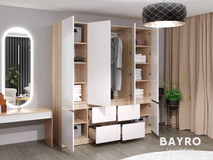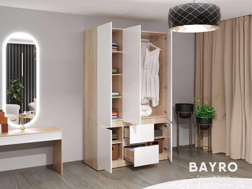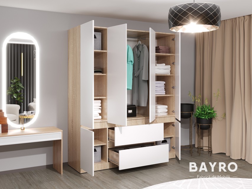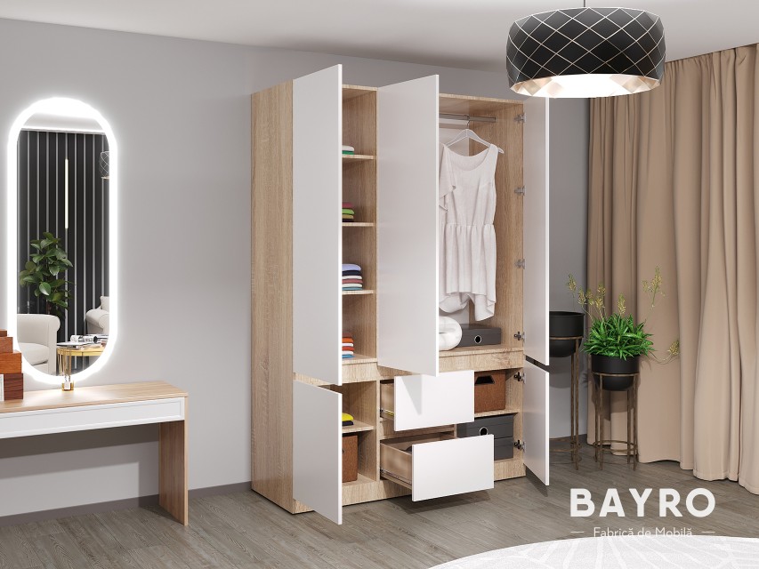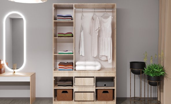 Шкаф Harmony в отделке дуб сонома создает теплую и естественную атмосферу в любой комнате. Текстура светлого дерева создает уютную обстановку, идеально подходящую для спален, детских комнат или светлых прихожих. Сочетание с матовыми белыми фасадами добавляет приятный и современный контраст. Универсальное решение для тех, кто ценит комфорт, порядок и гармоничный внешний вид.