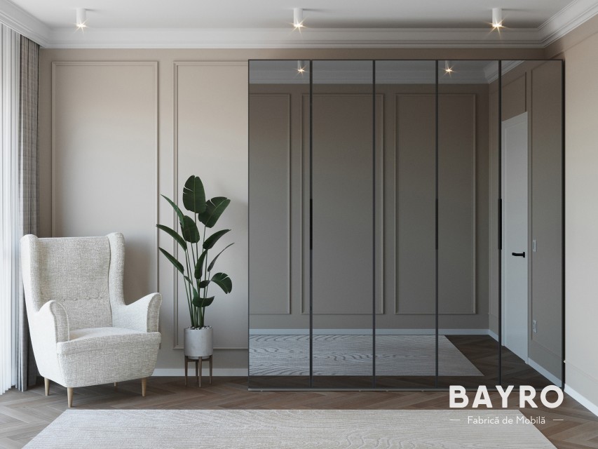 - FațadeMDF vopsit freză Sorento(piatră gri), MDF vopsit frezare Positano (piatră gri), oglindă Grafit Cinque