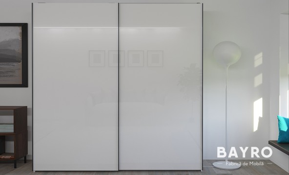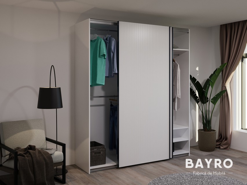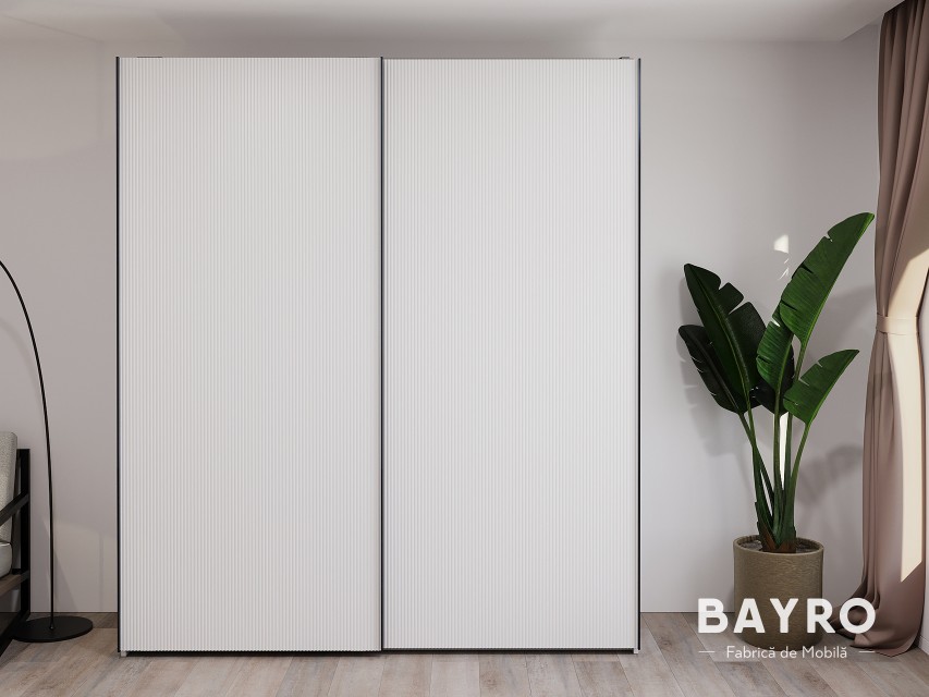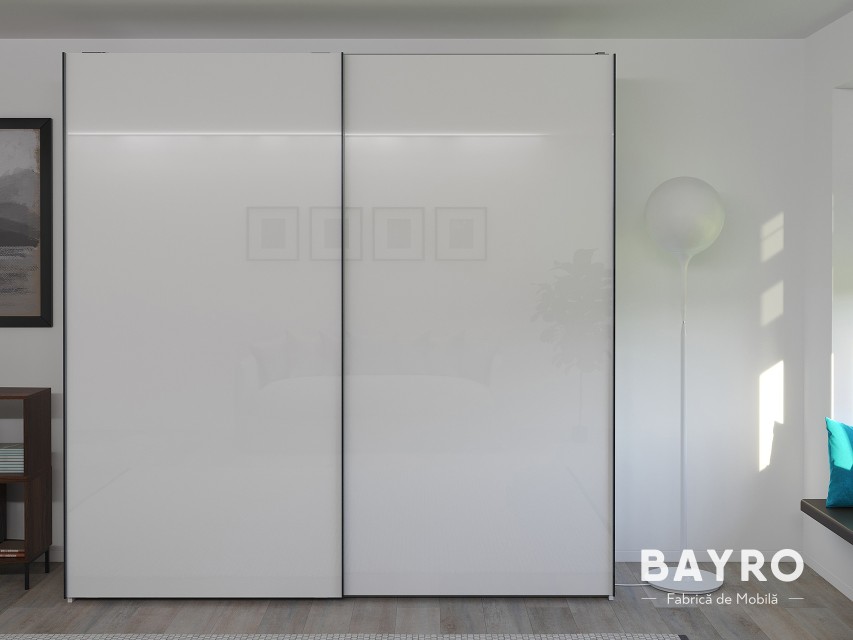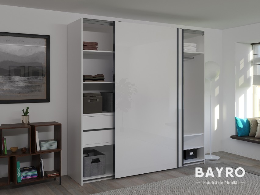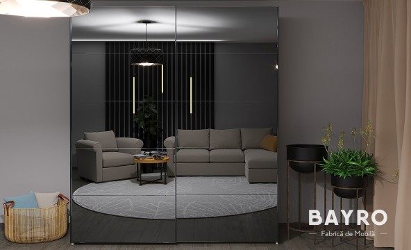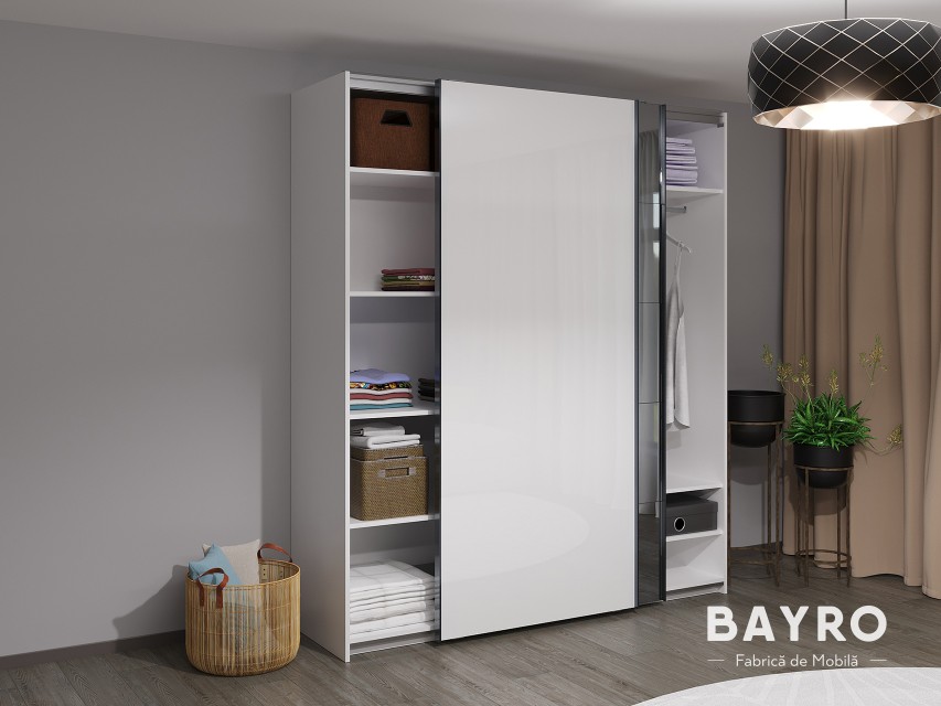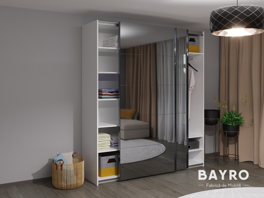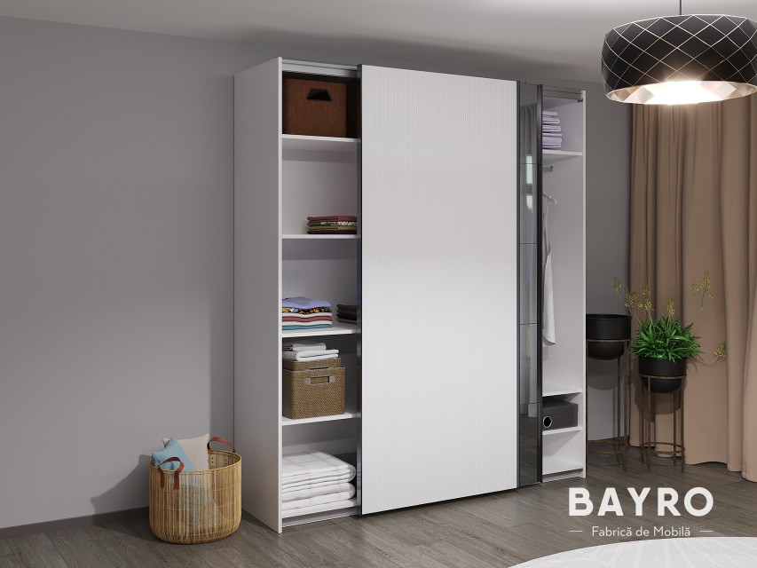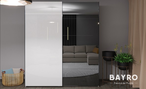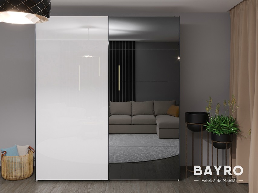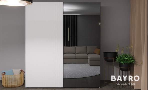 - FațadeMDF vopsit frezare Positano (alb mat, piatră gri), Gizir alb, oglindă Grafit Cinque