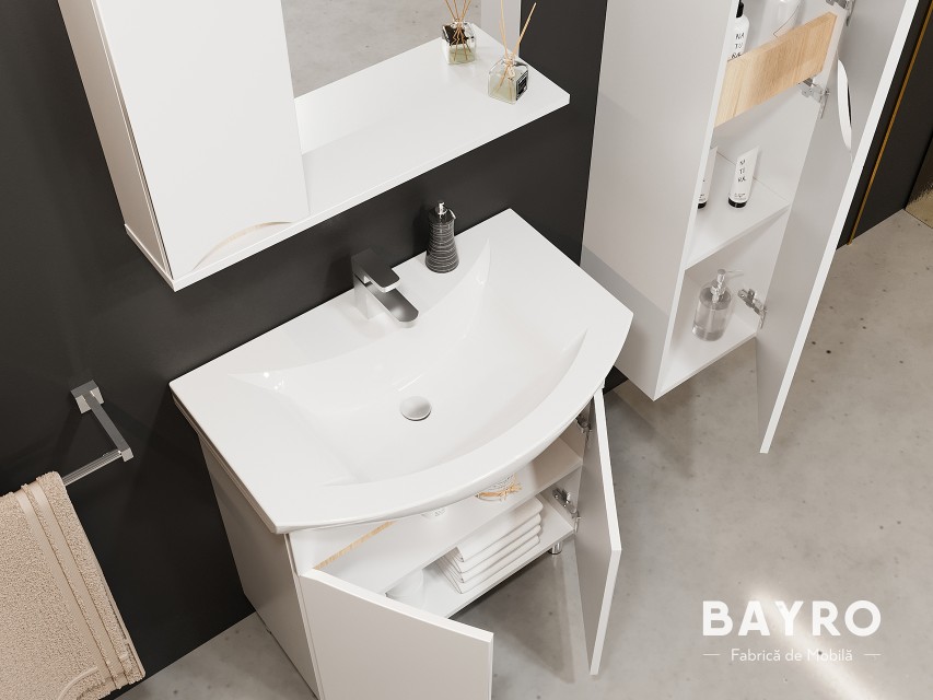 - Componență serieDulap cu lavoar, dulap cu oglindă, dulap înalt