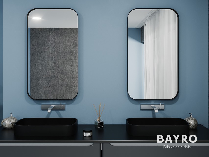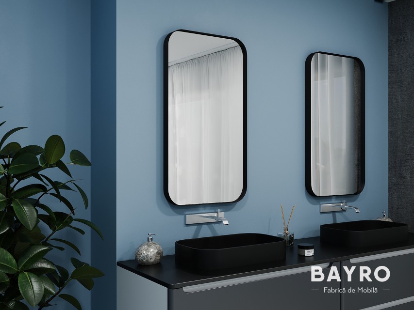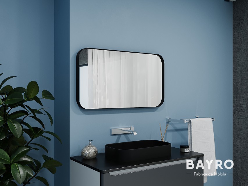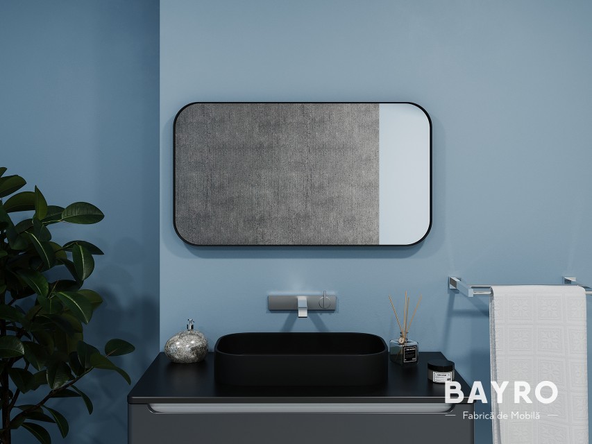 Зеркало с черной металлической рамой предназначено для ванных комнат, которые хотят продемонстрировать, что они являются пространством творчества, минималистичного дизайна, но с тонкими акцентами.