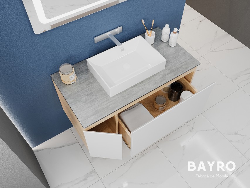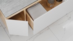 Серия мебели для ванной комнаты Sprint сочетает в себе элегантность подвесных конструкций и гибкость индивидуального дизайна. Корпус с теплой текстурой дерева идеально гармонирует с фасадами нейтральных цветов, создавая современный и изысканный облик. Дополните шкаф столешницей, доступной в различных вариантах отделки, идеально подходящей к стилю интерьера. Выберите раковину и создайте уникальный ансамбль, отражающий вашу индивидуальность и предпочтения.